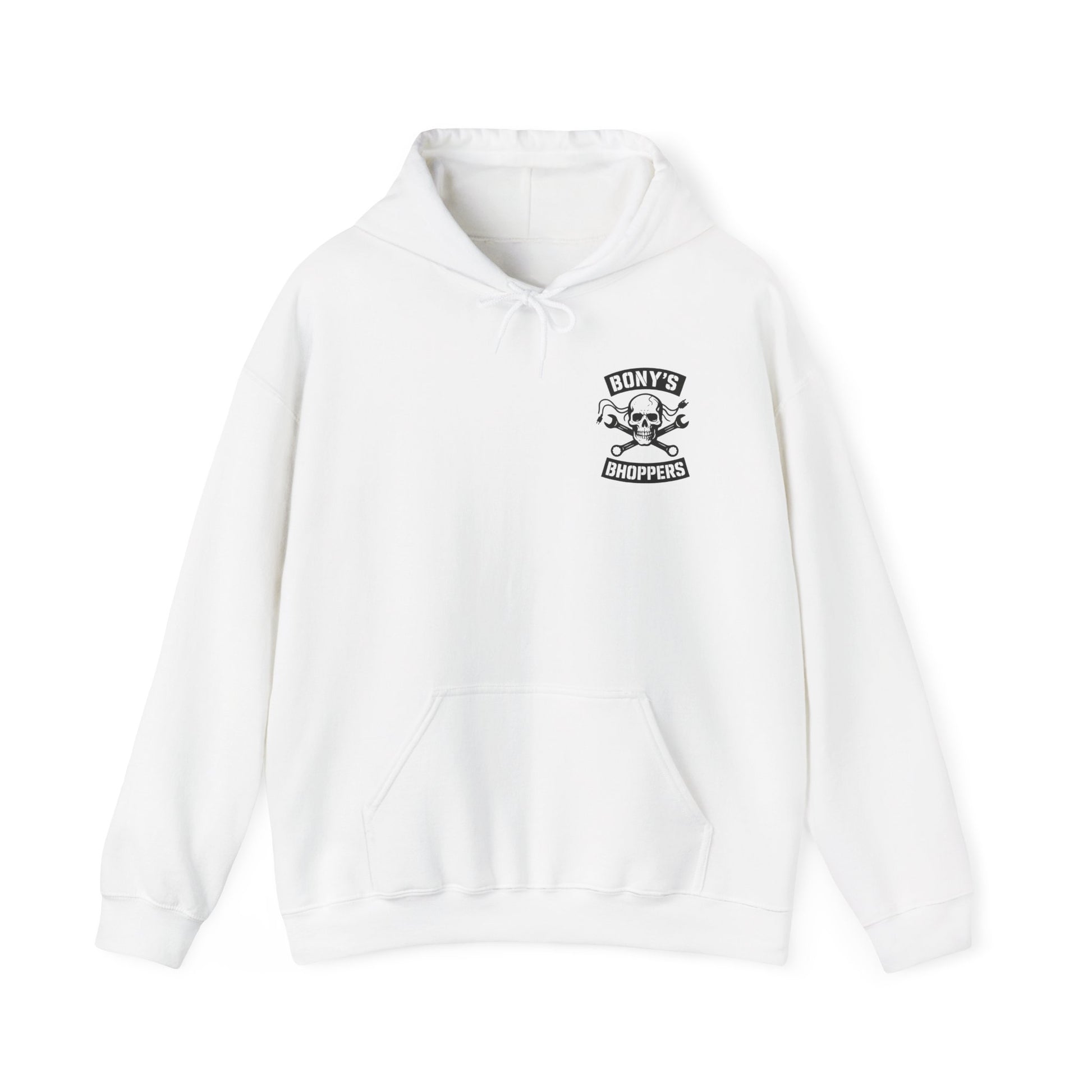 Bony's Bhopppers Skull Hoodie, Unisex Heavy Blend Sweatshirt for Halloween, Cozy Casual Wear, Gift for Friends, Unique Graphic Hoodie